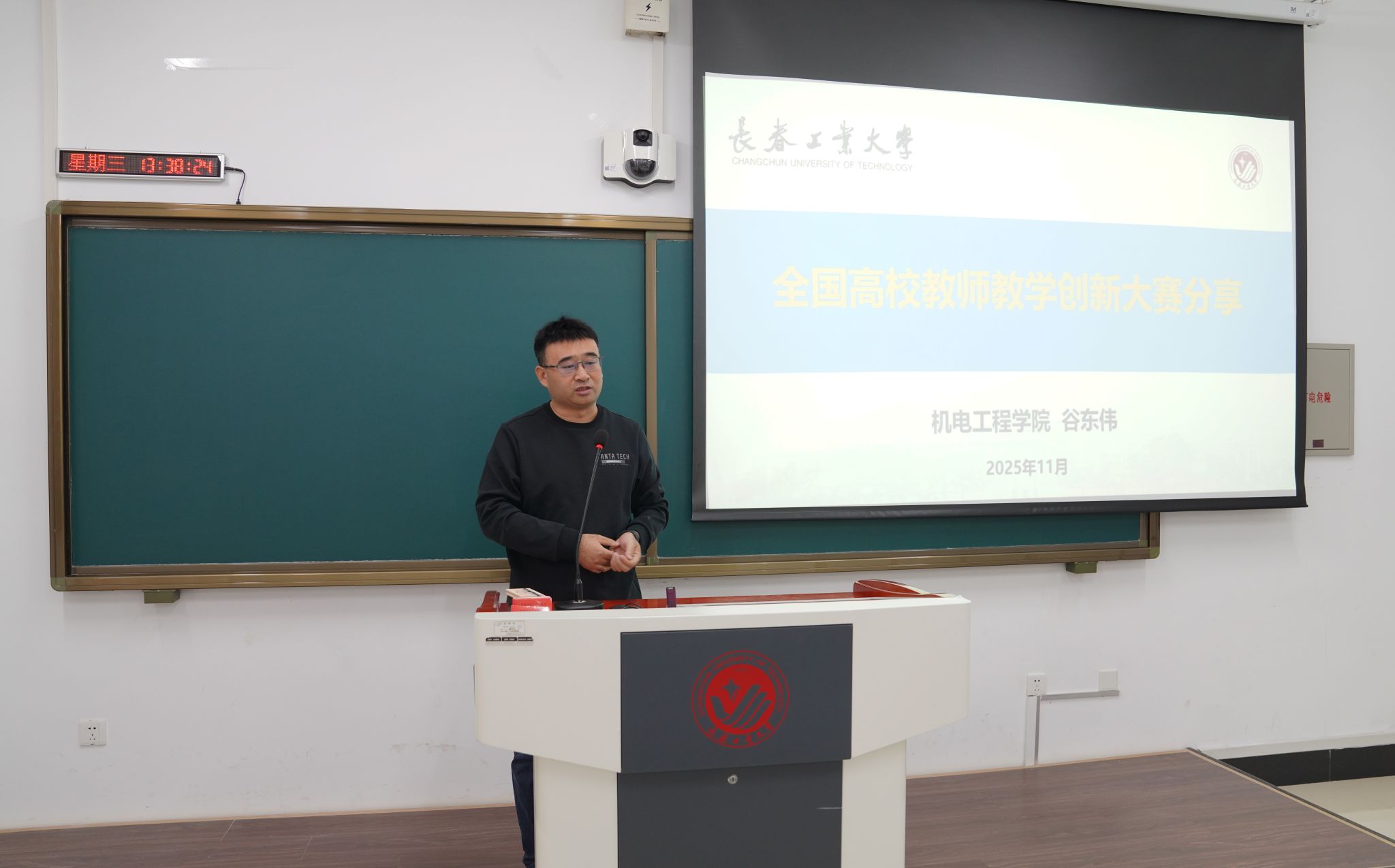 活动邀请机电工程学院副院长谷东伟教授以《全国高校教师教学创新大赛分享》为题,对于教师如何参加全国高校教师教学创新竞赛、怎样梳理创新成果报告内容、如何进行教学创新设计做精彩经验分享。