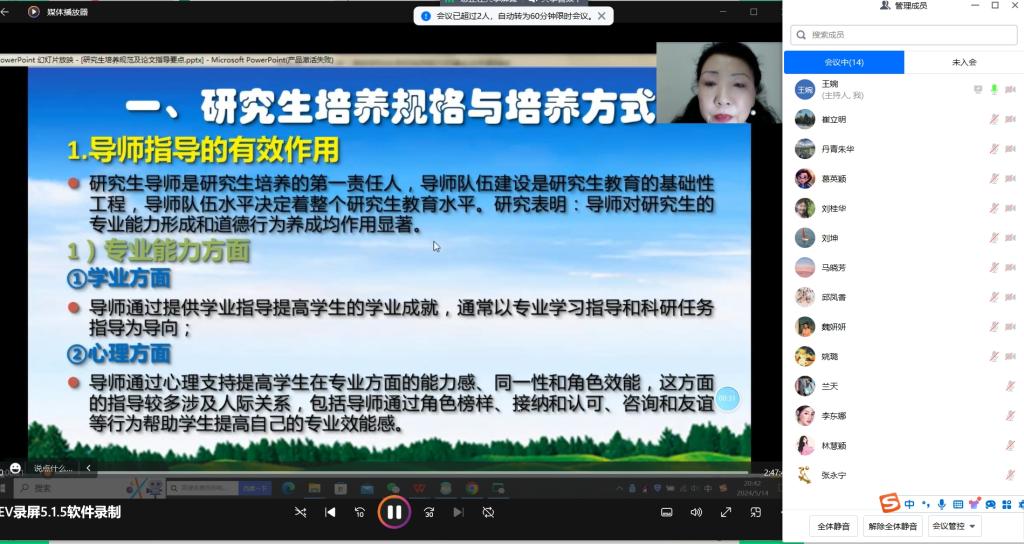 葛英颖院长在培训课程后强调,一要立足于研究生教育工作的新任务、新要求,瞄准新时代高层次拔尖创新人才培养需求,引导研究生导师队伍坚持“四为”方针,明确“立德树人、服务需求、提高质量、追求卓越”的工作主线;二要遵守学术规范,维护学术道德,不断提升学业辅导、科研指导、心理疏导等方面的能力和水平,自觉做研究生成长成才的责任人、引路人和知心人;三要构建和谐导学关系,全面提升研究生培养质量,让更多研究生人才在拥有渊博的学科专业知识、强烈的责任感。