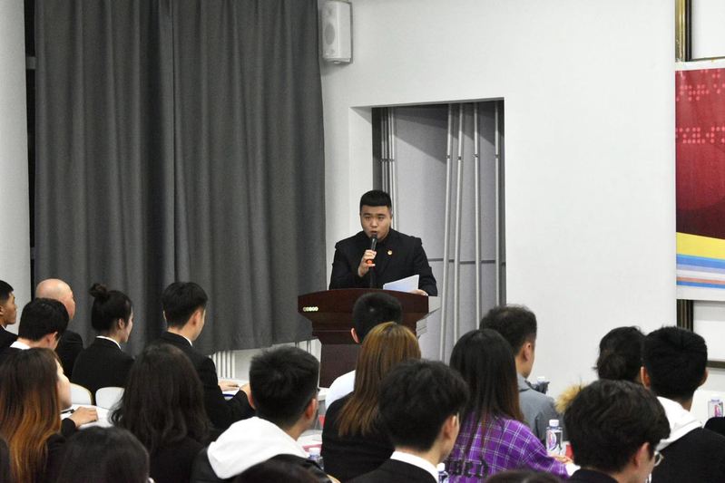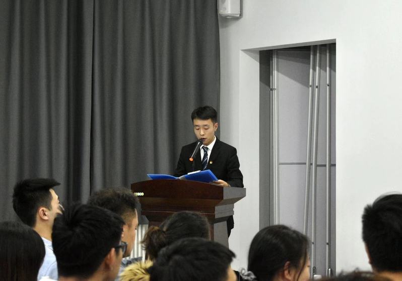 大会第四项:学院第十八届学生会执行主席刘宇鑫作工作总结,并对新一届团学组织提出期望:要团结带领全院青年,砥砺前行、共同奋进,充分发挥桥梁纽带作用,要为广大同学提供最温馨的服务和强有力的保障,为学院的发展和建设做出积极贡献。