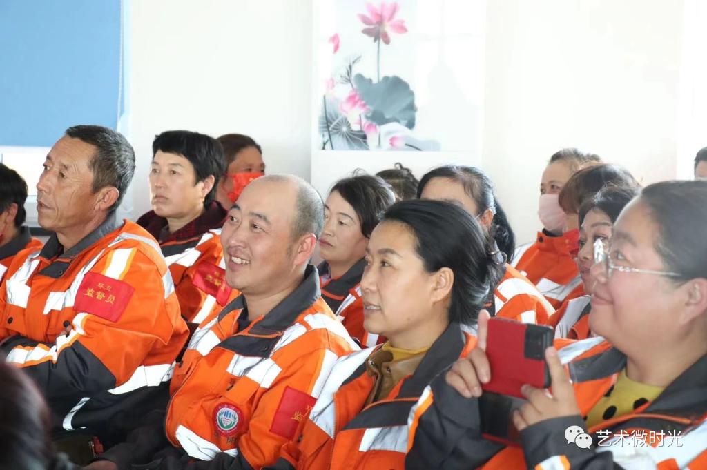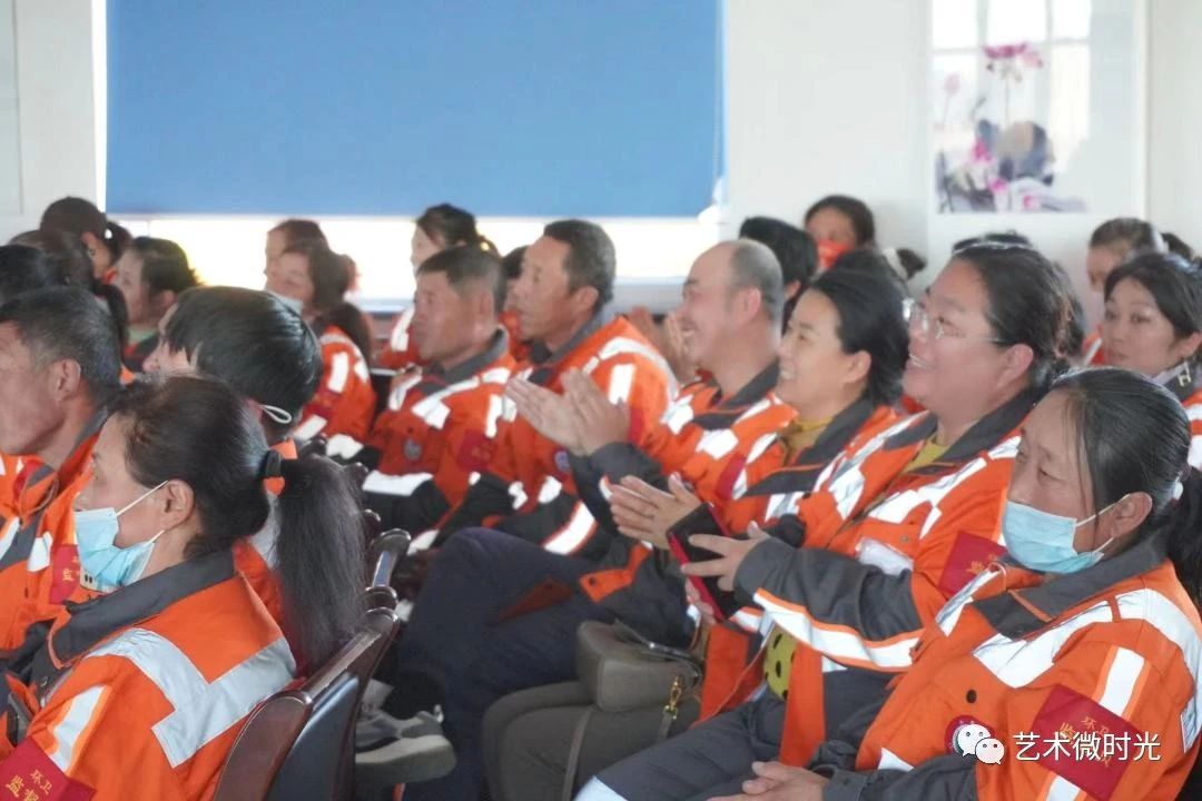 演出现场气氛热烈,高潮迭起。身穿橙色工作服的环卫工人们被节目深深吸引,频频报以热烈的掌声和喝彩。最后,演出在大合唱《稻香》中落下了帷幕。