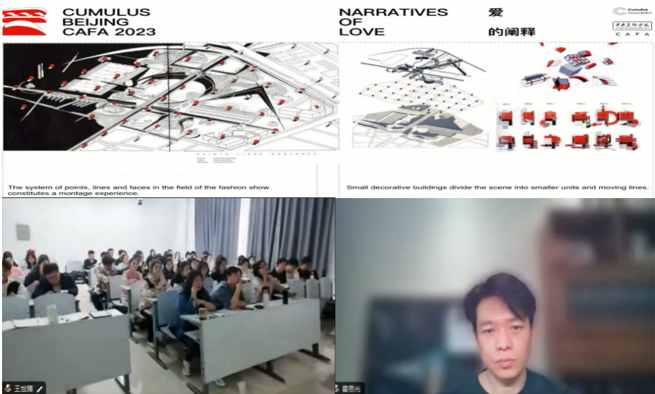 霍思光博士带来的是以“时尚品牌与叙事设计”为主题学术分享,第一部分介绍了同济大学设计创意学院发展历程和学院在教学、科研、国际合作等方面特色;第二部分时尚品牌与叙事设计。在互动环节同学们踊跃提问,霍思光博士认真解答,并给同学们提出很多学习的建议。