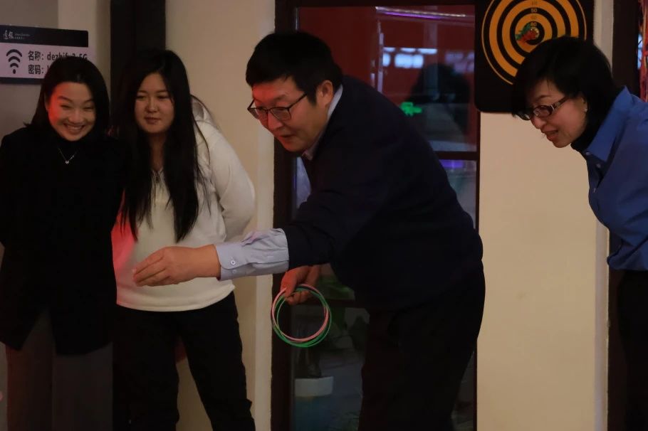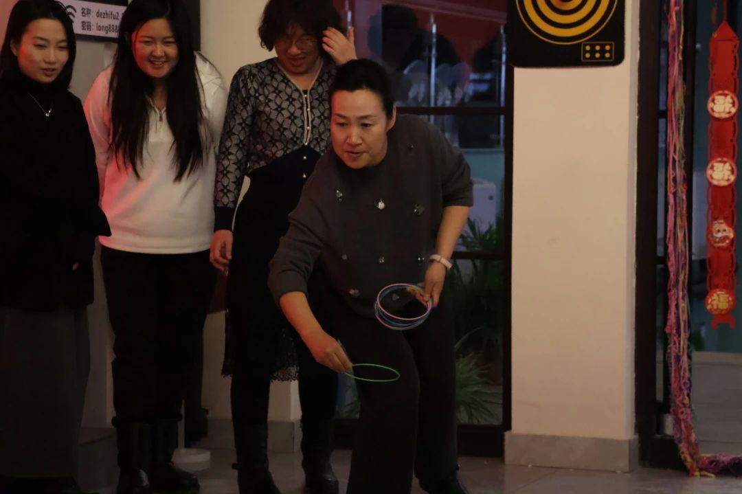 致辞之后,趣味横生的游戏环节随即上演。抢板凳、投壶、你画我猜、套圈等经典游戏项目,激发了教师们的浓厚兴趣与广泛参与。抢板凳游戏中,教师们身手敏捷,欢声笑语响彻会场;投壶环节,众人凝神屏息,精准投掷展现技艺;你画我猜中,教师间默契十足,智慧火花碰撞不断;套圈游戏中,大家各展所长,乐趣无穷。这些游戏不仅让教师们身心愉悦,更增进了彼此间的情谊与理解,让晚会现场充满了欢声笑语与温馨氛围。