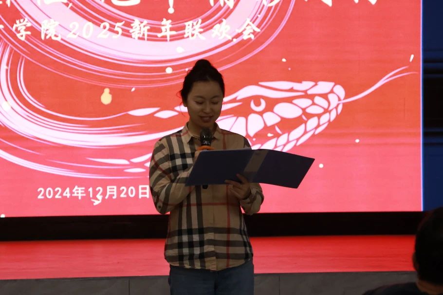 于灯火辉煌、气氛热烈的殿堂中,汇聚了众多教师,共同拉开以“蛇跃时代新程,艺术精彩同行”为主题的2025年新年盛典序幕。这不仅是对过去一年辛勤耕耘与辉煌成就的深情回望,更是对学院未来艺术教育宏伟蓝图的美好憧憬与坚定信念。联欢会由学院研究生党支部书记尚彤主持。