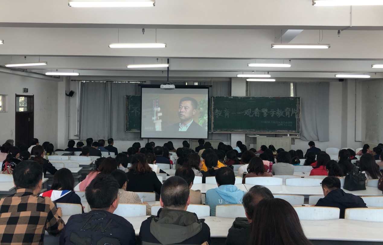 为深入开展“不忘初心、牢记使命”主题教育活动,进一步筑牢广大教职工拒腐防变思想道德防线,9月19日下午,Cool18 、外国语学院、数学与统计学院共同组织全体教职工集中学习警示教育纪录片《不忘初心 警钟长鸣》。