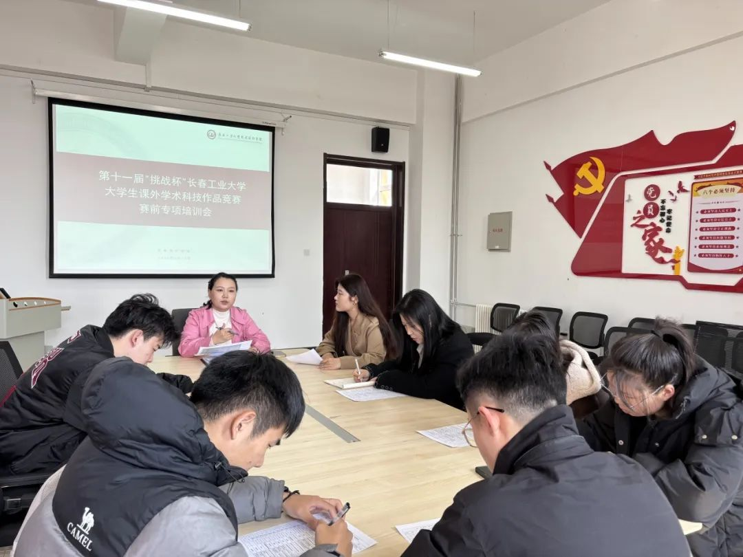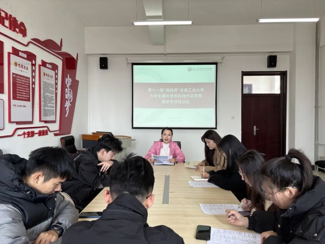 大学生课外学术科技作品竞赛赛前专项培训会。会议由学院团委书记侯天放主持,学院各参赛项目负责人参会。