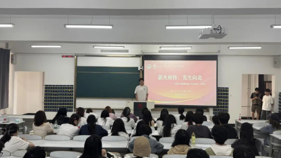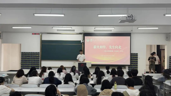 本网讯(通讯员:宋姗珊)5月28日,Cool18 举办“薪火相传,先生向北”吉林大学原创话剧《先生向北》分享会,2024级全体本科生参加。学院青马班代表黄珊、汪赞、李忠杰、肖野、金圣皓分享观剧感悟。