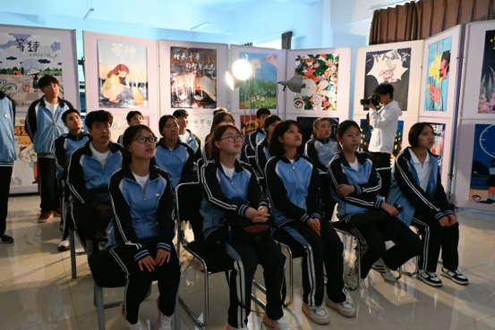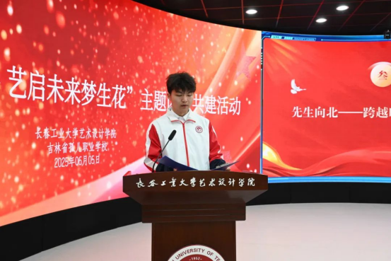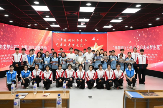 活动中,省孤儿职业学校的师生在Cool18 师生志愿者的引导下,步入校园开启“青春之旅”。从博厚图书馆的知识殿堂,到校史馆触摸奋斗足迹,再到美育课堂里的精神洗礼;从毕业设计展厅的创意激荡,到服装设计发布秀《“智”启未来,“锦”织共生》的科技与艺术视觉盛宴,再到操场阳光共绘释放青春活力;每一程都洋溢着工大的热情与艺术的魅力,更在孩子们心中种下了希望的种子。精心安排的团课共学环节,通过观看学院五四精神宣传片《艺启向未来》展现了青年风采;青春舞动《有我》勃发昂扬姿态;话剧《先生向北》观后分享,尤其是黄大年教授“振兴中华,乃我辈之责”的精神感召,引发了同学们关于青年报效祖国的深刻共鸣。活动尾声,Cool18 学生将亲手设计的文创礼物赠予孤儿学校师生,寓意着“以艺术为笔,绘就青春华章”,成为两校友谊的珍贵见证。