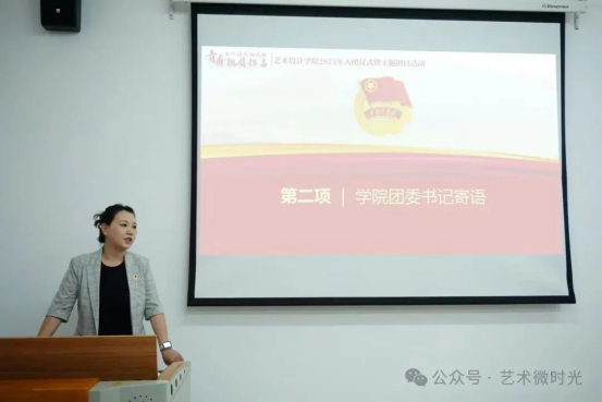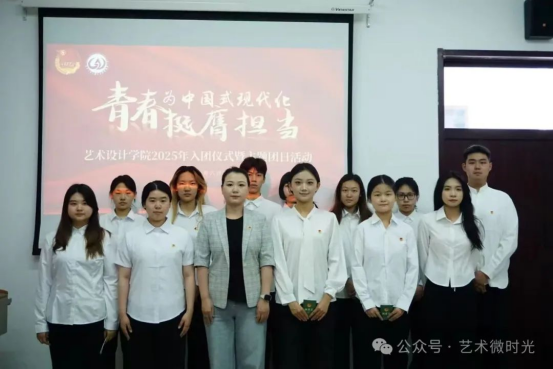 在艺术楼302会议室召开“青春为中国式现代化挺膺担当”2025年入团仪式。学院团委书记侯天放,学生团委副书记刘芹逸、李帅兵及新团员代表参加活动。
